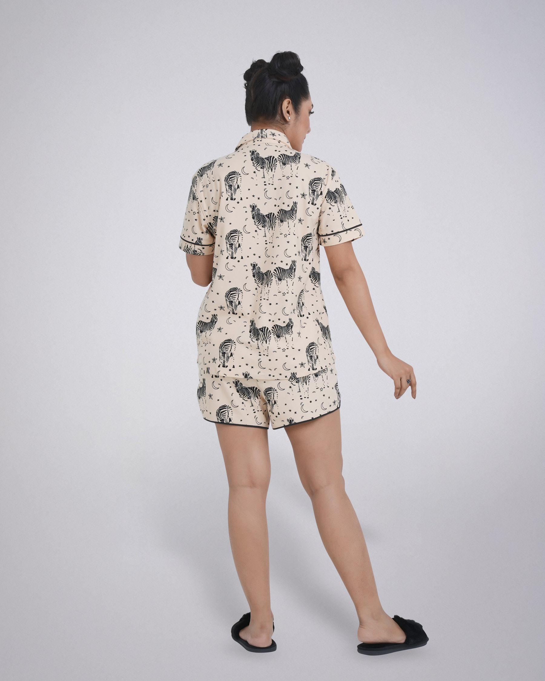 Leafletic Women's Short Sleepwear Set | Short-Sleeve Button-Down Shirt & Matching Shorts | All-Over Print Soft & Comfortable Nightwear | Short Pajama Loungewear | Two-Piece Night Suit