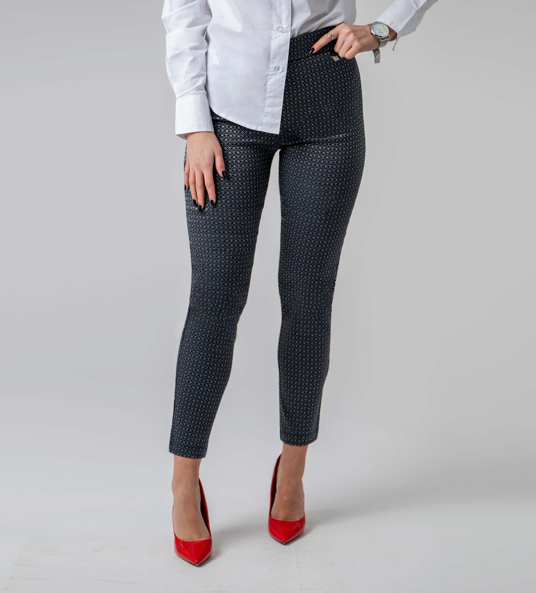 Leafletic Women's Super Stretch Jacquard Bengaline Pants | Comfortable Office & Formal Trousers | Slim Fit Ladies Bottom Wear with Viscose Blend