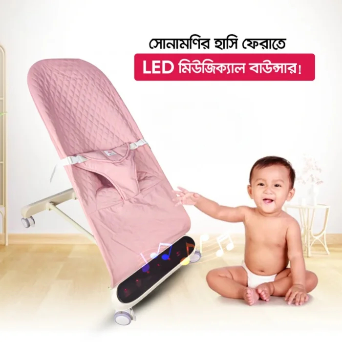 LED বেবি বাউন্সার রকার চেয়ার – অটোমেটিক সুইং, মিউজিক ও সেফটি বেল্টসহ