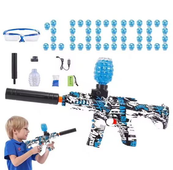 Introducing the Electric Gel Ball Blaster Toy Kit With Goggles Water Gun in Multicolor - an exhilarating, action-packed toy that promises endless hours of fun and excitement for kids and adults alike. Product Features: Electric Gel Ball Blaster: This blaster is a high-performance, electric-powered toy gun that shoots soft and eco-friendly gel balls. It offers rapid firing capabilities, allowing you to unleash a barrage of gel balls at your targets with ease. Safe and Eco-Friendly Ammo: The gel balls, also known as water beads or gel pellets, are made from non-toxic, biodegradable materials. They are designed to be soft on impact, ensuring safety during play. These balls expand upon soaking in water and disintegrate over time. Multicolor Design: The blaster is available in a vibrant multicolor design that adds an extra level of excitement and style to your gameplay. The attractive colors make it visually appealing to both kids and adults. Included Goggles: Safety is a top priority, and this kit comes with a pair of protective goggles to shield your eyes during intense gel ball battles. The goggles offer a comfortable fit and clear vision. Easy Operation: The blaster is user-friendly, with a simple trigger mechanism for shooting gel balls. It's lightweight and easy to handle, making it suitable for players of all ages. Rechargeable Battery: The blaster is equipped with a rechargeable battery, ensuring you can keep the action going without the hassle of constantly replacing batteries. Adjustable Shooting Modes: This toy gun features adjustable shooting modes, allowing you to switch between single-shot and rapid-fire modes, giving you flexibility in your battles.