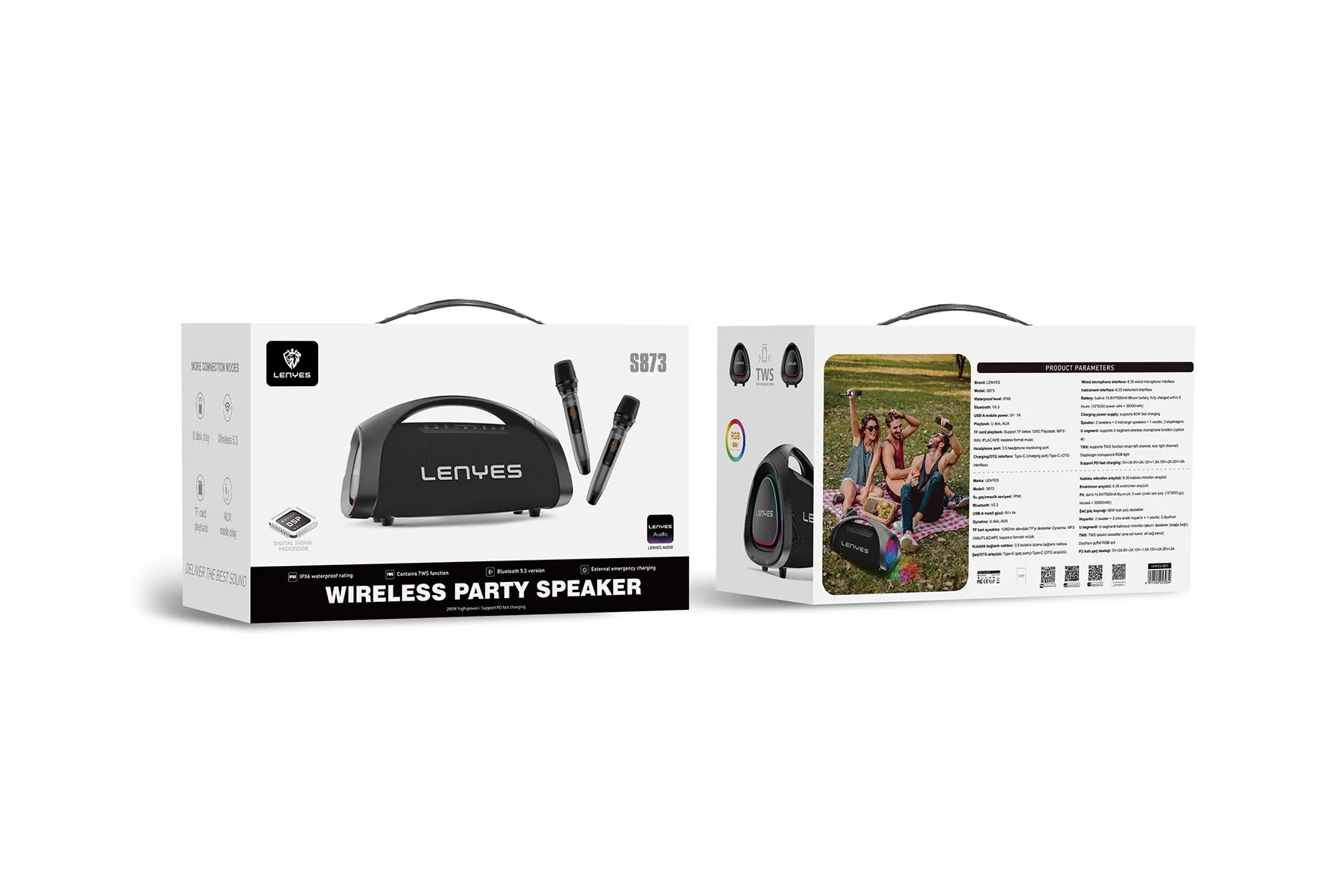TwS: supports TWS function (main left channel, sub right channel)Diaphragm transparent RGB light