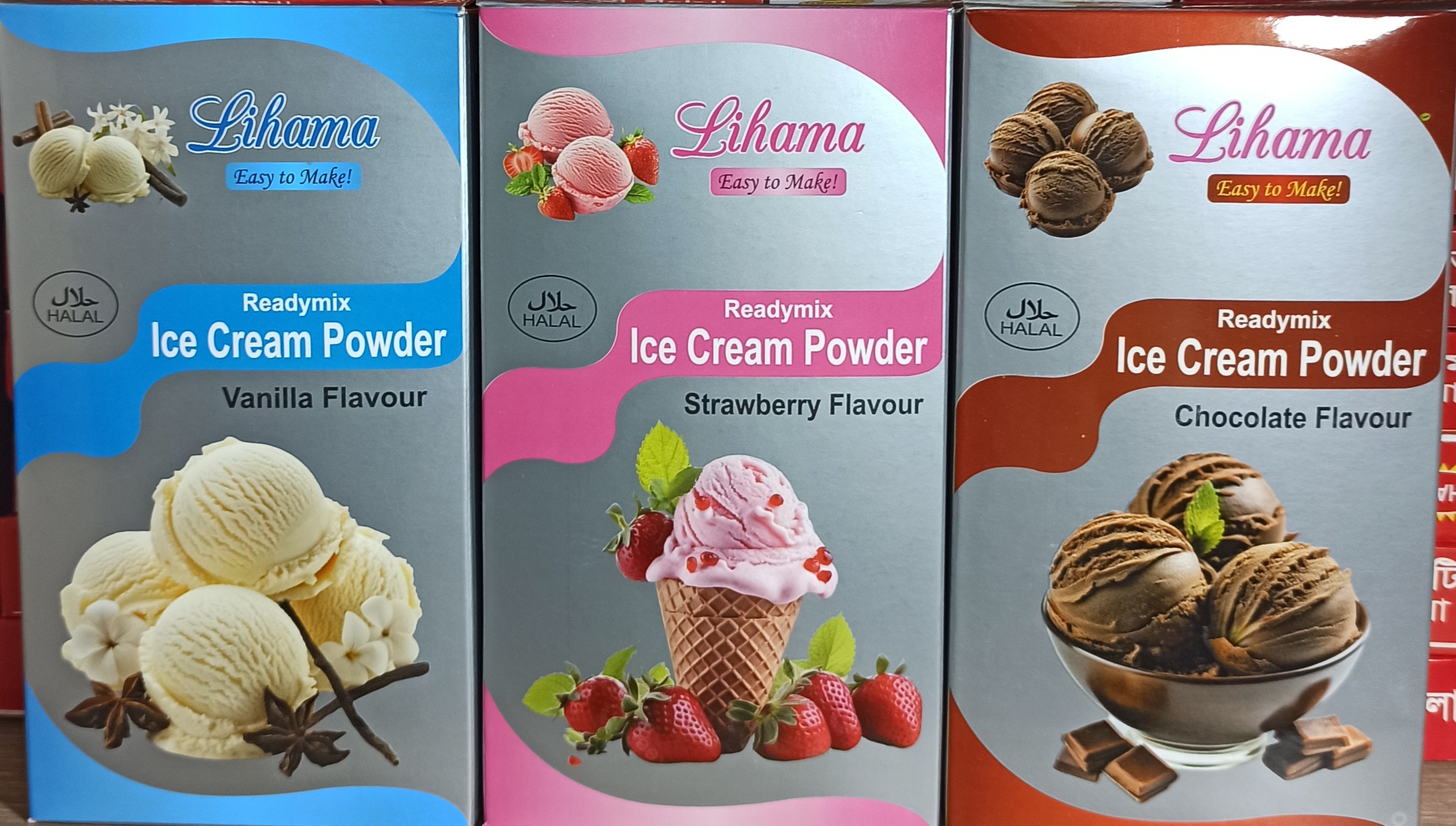 Lihama Ready Mix Special Ice Cream Powder For Business Pack With Combo Chocolate, Strawberry , Venially - 500gm x 3 = 1.5 Kg