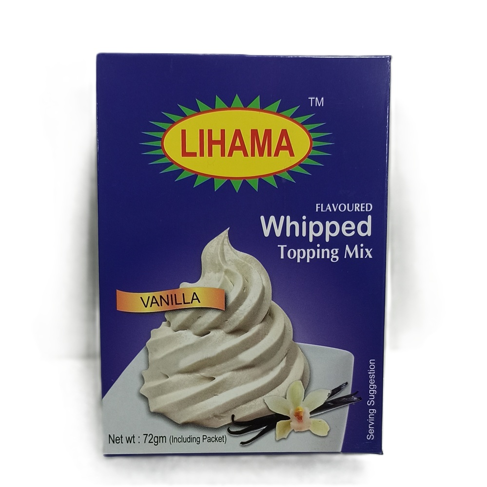 LIHAMA Whipped Topping Mix Vanilla is a powdered mix designed to create a light and fluffy vanilla-flavored whipped topping. It's a convenient and easy-to-use product, perfect for adding a creamy, sweet finish to cakes, pies, desserts, and more. The 72gm pack is designed for single use, making it ideal for home bakers.