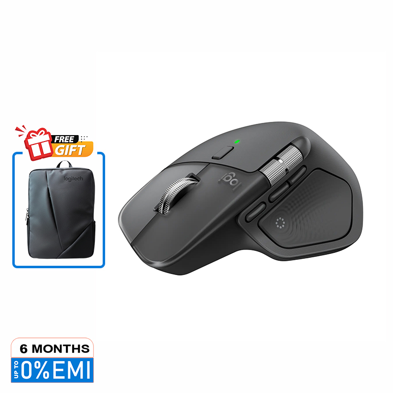 The Logitech MX Master 4 brings immersive control and precision you can feel with haptic feedback. Experience haptic feedback on specific actions, shortcuts, notifications like switching desktops, slider adjustments and more. Customize vibration intensity with Logi Options+ (1). With Actions Ring shortcuts and MX Master 4, save up to 33% of your time (2) by accessing tools and filters at your cursor and reducing repetitive movements by up to 63%. (2) Experience uninterrupted performance with 2X more powerful connectivity, powered by an advanced radio chip, optimized antenna placement, and a new USB-C dongle. (7) Scroll 1,000 lines per second with Logitech's fastest MagSpeed wheel, switching between hyper-fast and pixel-perfect scrolling for ultimate precision. The 8k DPI sensor tracks on any surface—even glass. (5) Designed for comfort, it keeps your hand in a natural posture, and quiet clicks that reduce noise by 90% (8). Stay powered up with up to 70 days of battery life, plus three hours of use from a one-minute charge, charging cable not included (10). Built sustainably, it incorporates recycled materials: plastic parts include recycled plastic - 54% Space Black; 48% White Silver (12); 100% recycled cobalt in the battery; Built to last with improved stain resistance (7) Compatible with Windows, macOS, Linux, Chrome OS, iPadOS, and Android. Requires Logi Options+ app for advanced customization.