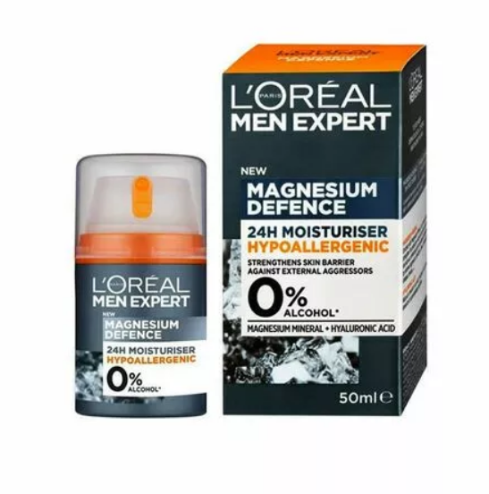 - Lastly, infused with the famous Hyaluronic Acid, L'Oréal Men Expert Magnesium Defense Face Wash also has relevant hydrating properties, leaving the skin smooth and replenished after every application.