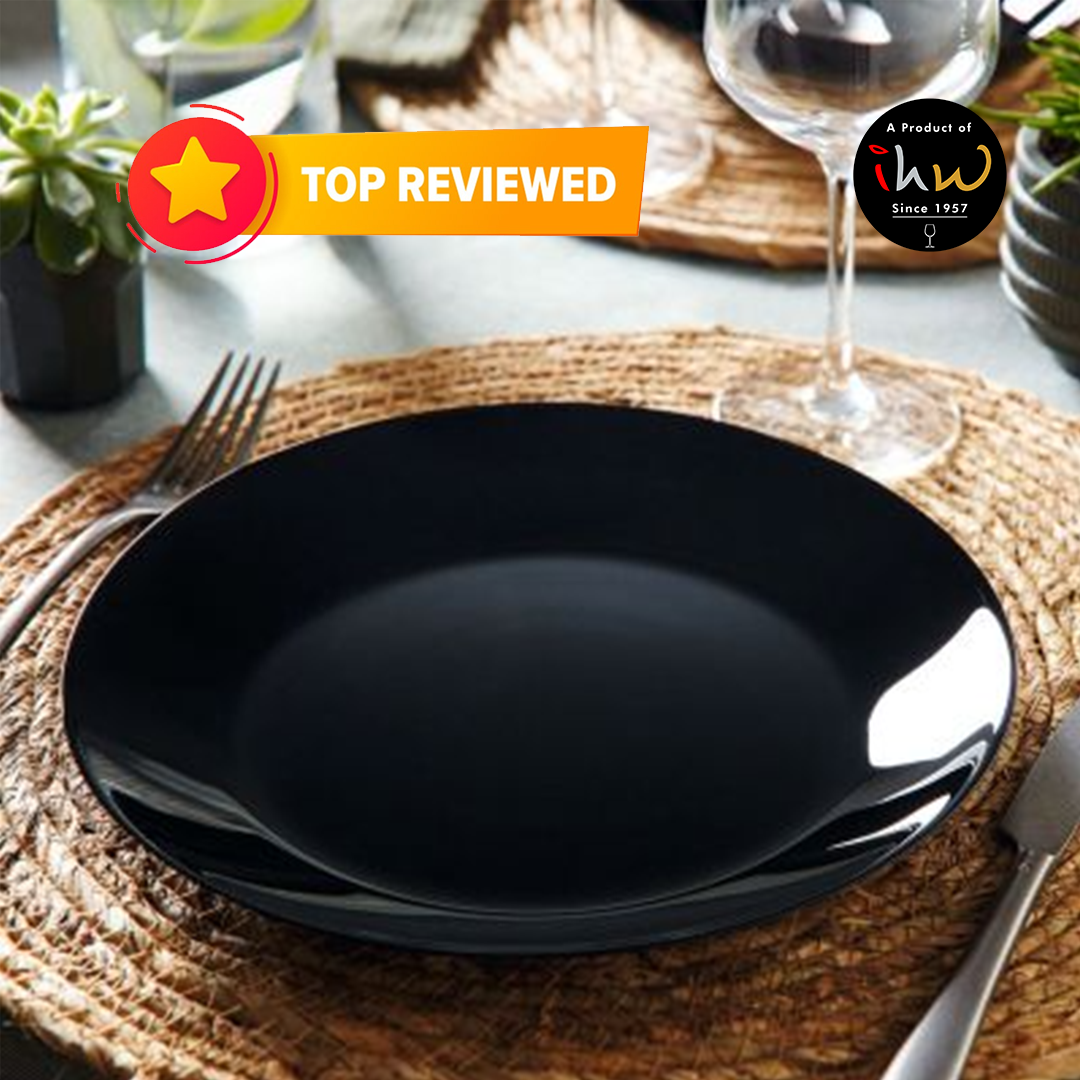 Luminarc Zelie Black Dinner Plate – 25 cm, Single Piece | Durable, Dishwasher Safe, Tempered Opal Glass