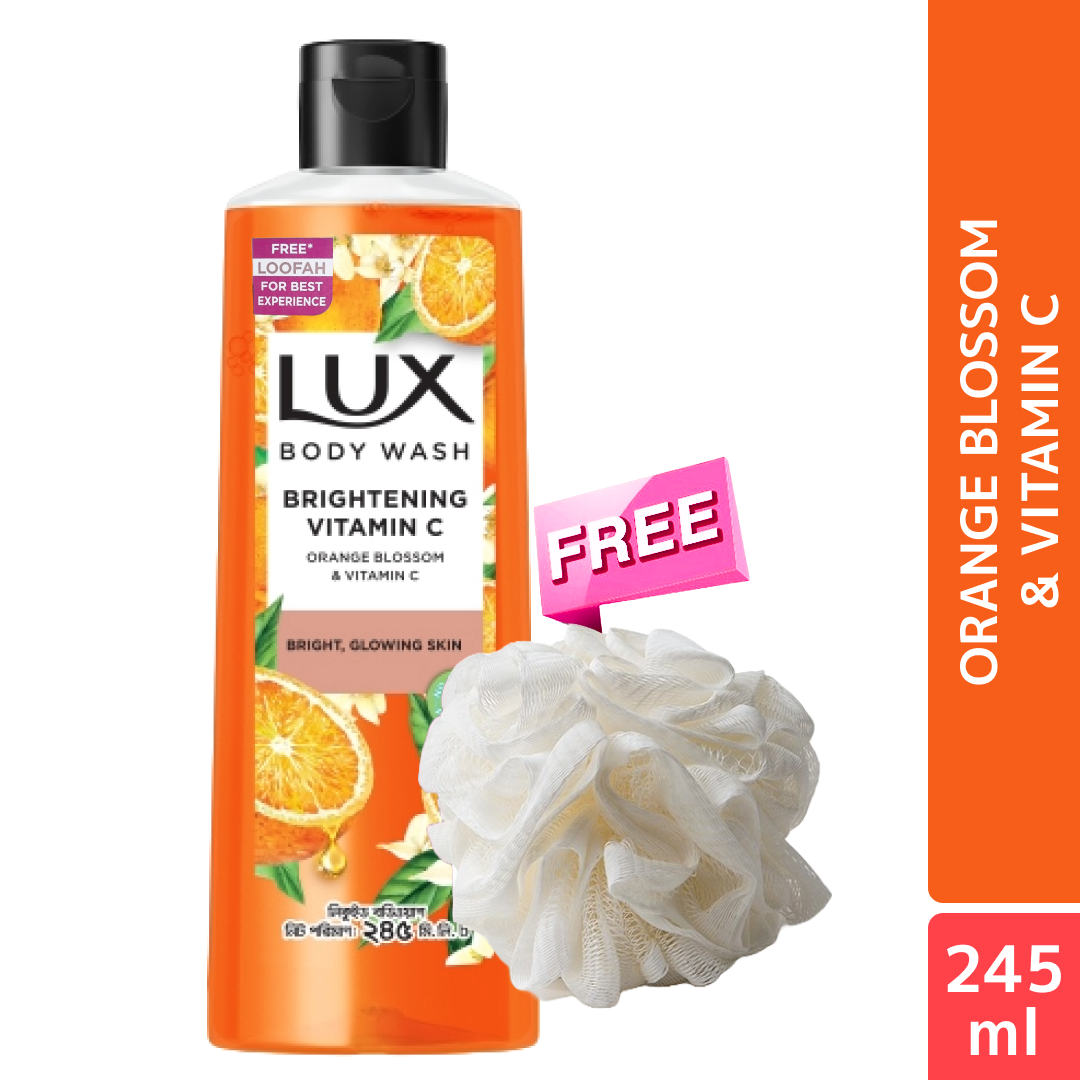 Lux Bodywash for extra foam, extra softness & fragrant skin. Indulge in a daily bath that captivates your senses, with Lux Bodywash. Designed with delicate blend of Orange Blossom & Brightening Vitamin C, it leaves your skin feeling soft .A fragrance designed to depict a luxurious floral bouquet evokes imagery of Orange Blossom that will turn your shower into a refreshing moment of pure pleasure. At the heart, the cherry blossom floral bouquet evokes sense of indulgence with the exotic warmth of sandalwood, amber base notes and the indulgent, creamy kiss of praline & vanilla giving a perfect balance of care and nourish. Formulated with glycerine a well known skincare ingredient known to help preserve skin’s natural moisture & brightening Vitamin C, LUX Bodywash leaves your skin fragrant & gives you a brighting glow after every bath. Lather up for a sensorial shower like never before in just 3 steps: Step 1 Create rich foam by pouring a coin sized drop on a wet loofah. Squeeze to make it lather. Step 2 Massage rich lather on wet skin, then rinse away thoroughly with water. Step 3 Enjoy luxurious floral fragrance with soft & radiant skin.