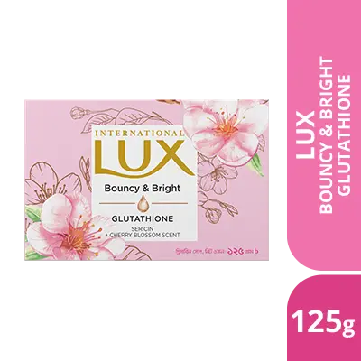- Transform your daily bathing routine into a luxurious experience with the LUX International Bouncy & Bright Beauty Bar. Infused with Glutathione, a powerful antioxidant celebrated for its skin brightening properties, this beauty bar works to reduce dullness and uneven skin tone, unveiling a radiant and luminous complexion. The addition of Glycerin ensures deep hydration, drawing moisture into your skin to keep it supple and soft. Perfect for those seeking indulgent skincare, this soap is designed to pamper and rejuvenate both face and body. Each use envelops your skin in a rich, velvety lather, infused with the enchanting fragrance of Cherry Blossom. The delicate floral aroma transforms your bath into a sensorial escape, making this soap a standout choice among soaps for bath enthusiasts. This beauty bar offers a complete luxurious experience, leaving your skin feeling smooth, refreshed, and beautifully enhanced. Clinically proven to improve skin texture, the LUX International Bouncy & Bright Beauty Bar is suitable for all skin types and can be used daily for optimal results. Elevate your skincare routine with this versatile soap, perfect for both morning refreshment and evening relaxation. Treat yourself to the indulgence of soft, hydrated, and bright skin with every use. Experience the ultimate in skincare with this beauty bar, designed to make every bath an extraordinary moment.