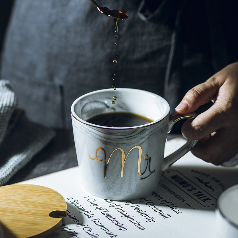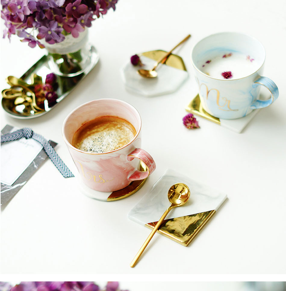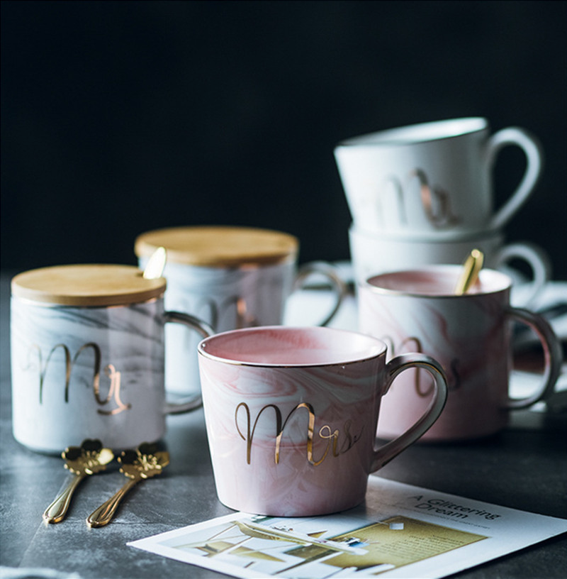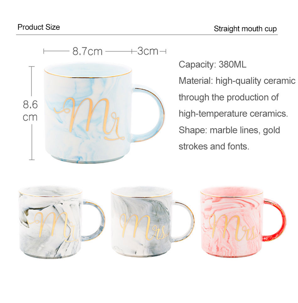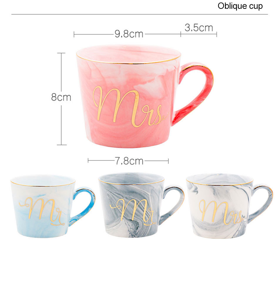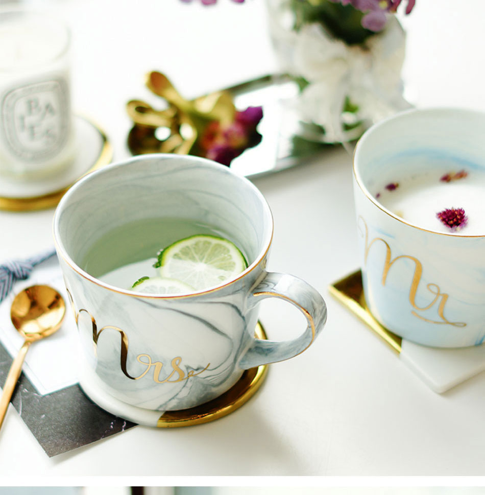 Luxury Coffee Mug Breakfast Milk Coffee Tea Cup Marble Gold Plating MRS MR Ceramic Mug Pink Blue Drinkware Couple Lover's Gift