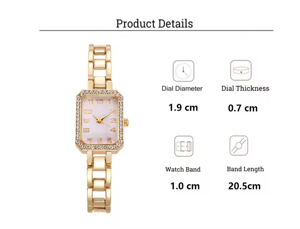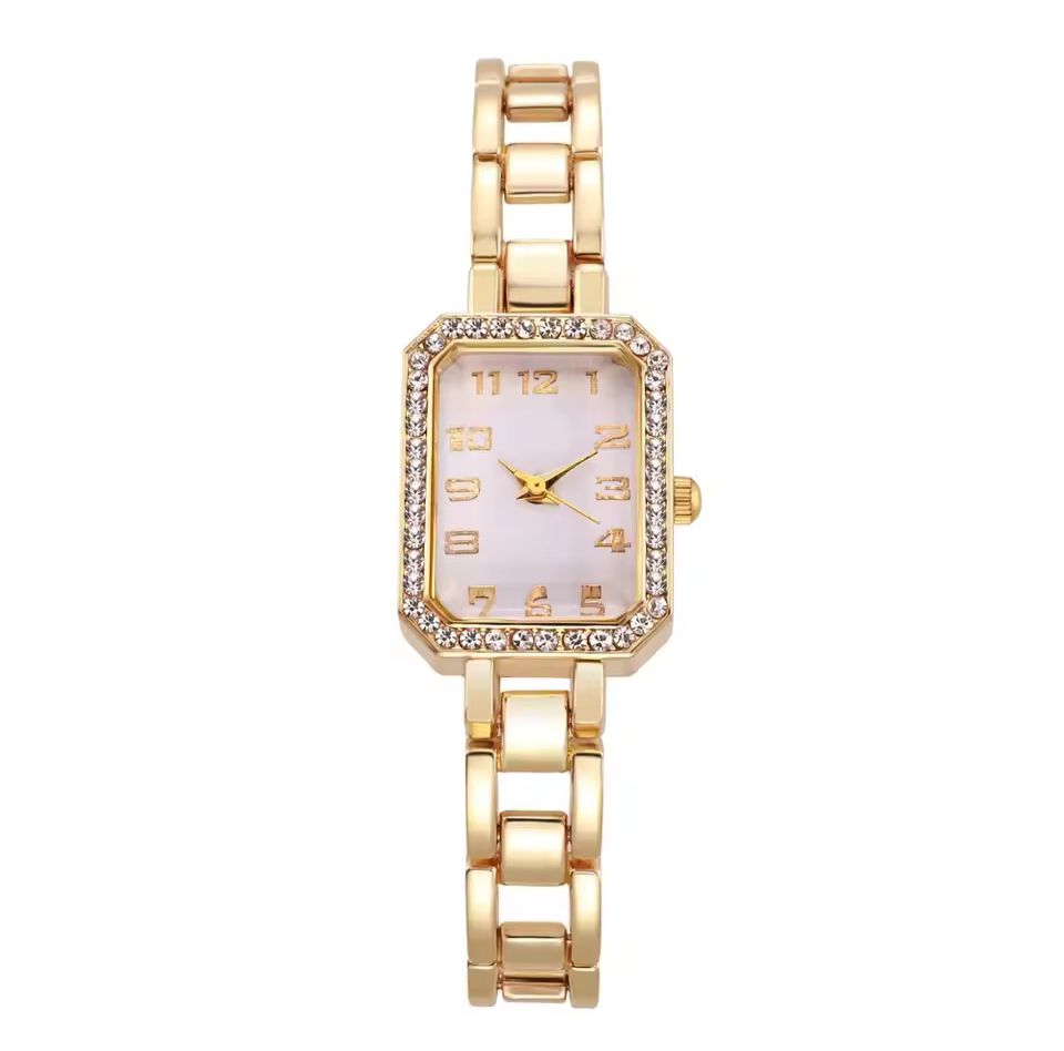 Luxury Women's Watch New Simple Square Full Diamond Digital Quartz Watche Gold Stainless Steel Bracelet Women's Dress ClockProduct parameters