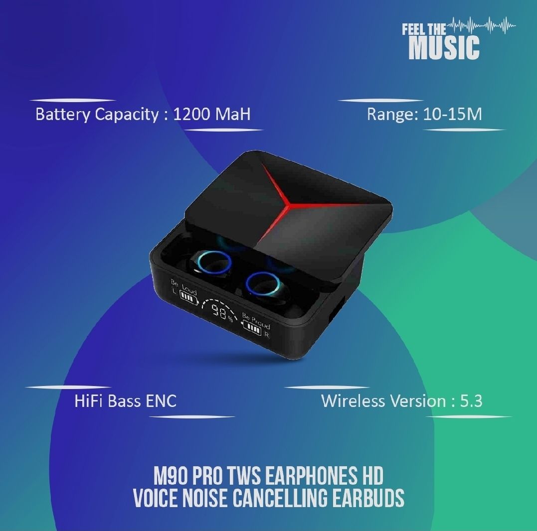 M90 Pro Tws Bt Earphones True Wireless Earbuds Noise Cancelling Led . Overview. Essential details.