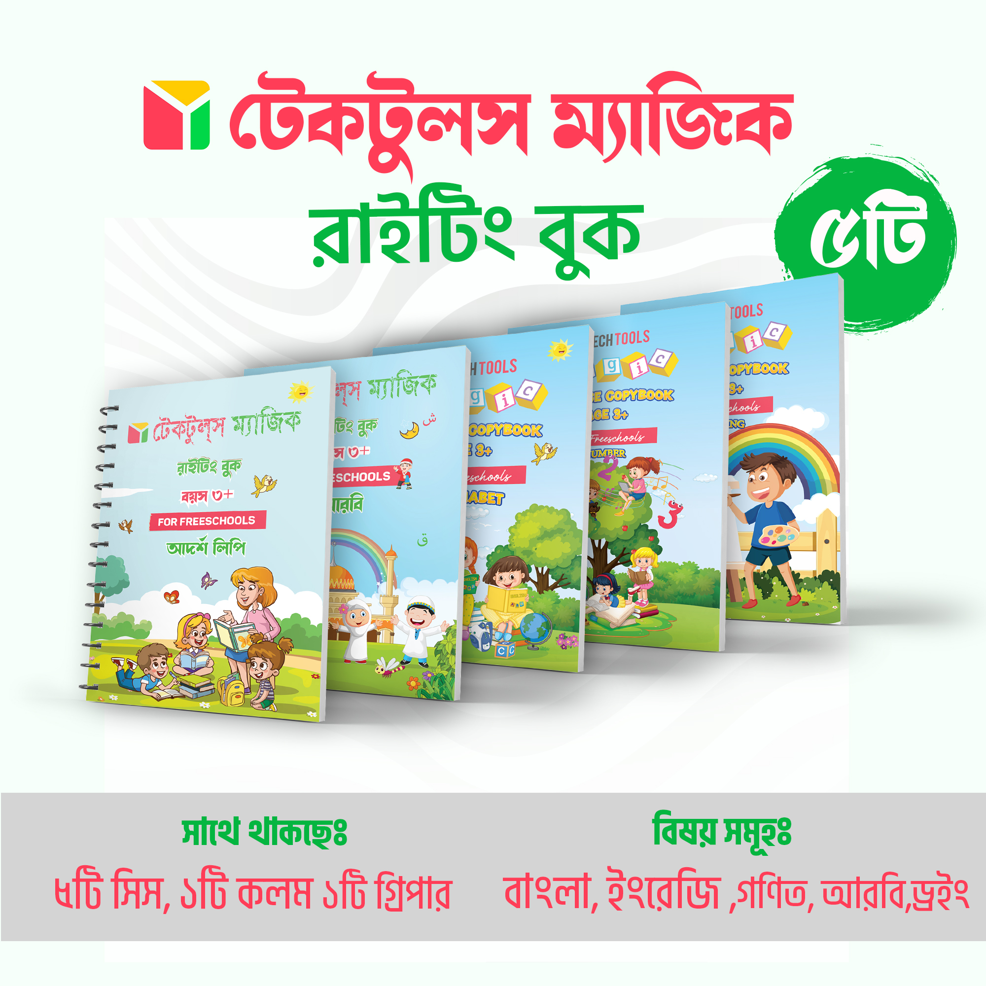 - এই সেটটিতে রয়েছে বই(Bangla, English, Math and Arabi, Drawing), 1 টি কলম, 5 টি শীস ও একটি গ্রিপার