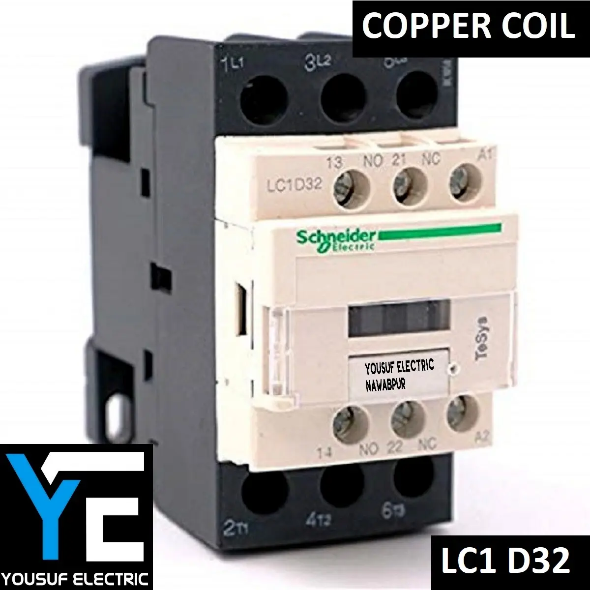 LC1D32, Telemecanique, contactor LC1D32, TeSys D, type LC1D, 3P, 3PH, 32A, 600V, 5HP @ 240V, 10HP @ 480V, 15HP @ 600V, complete with 110/120V AC coil, 1 N/O auxiliary contact, AC magnetic contactor, suitable for use with LC1-D series motor control systems