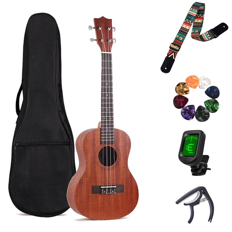 Experience the warm, rich tones of the Mahogany Concert Ukulele, a beautifully crafted instrument that brings the essence of Hawaii to your hands. This acoustic 4-string ukulele features a classic mahogany body, known for its resonant sound and visual appeal. The concert size strikes a perfect balance between portability and a fuller, deeper sound compared to soprano ukuleles, making it ideal for players of all levels.
