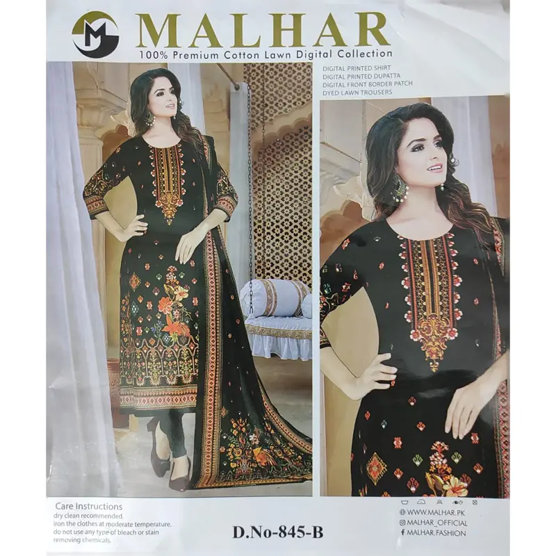 MALHAR 100% Premium cotton lawn digital printed 3 Piece