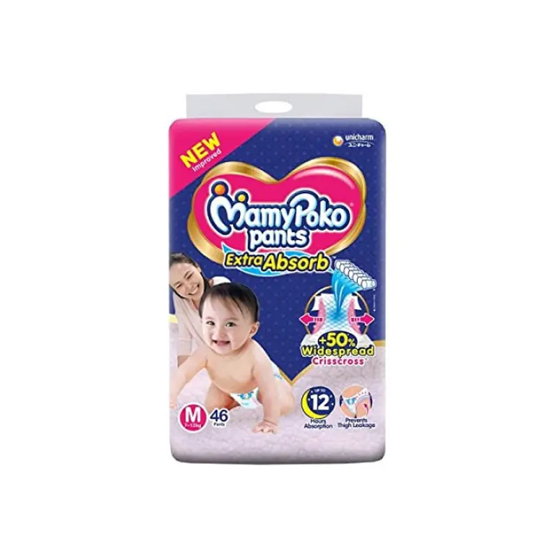 Mamy_poko Baby Diapers Medium Pants 46 Pcs Pack (07-12kg), Made in India
