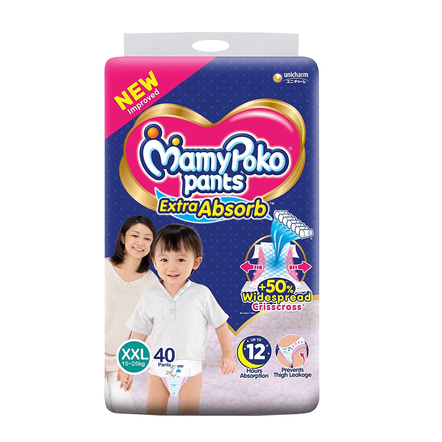 Mamy_poko Baby Diapers XXL Pants 40 Pcs Pack (15-25kg), India