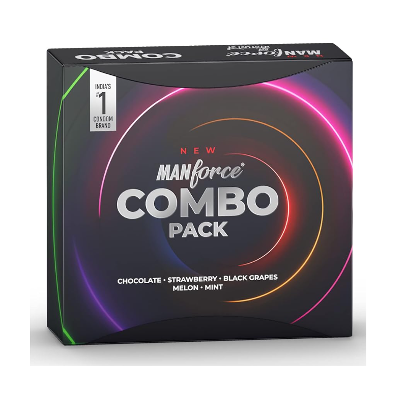 Manforce Condom Combo Pack (Chocolate, Strawberry, Black Grapes, Melon & Mint) Indian (20 Pcs) - Packet