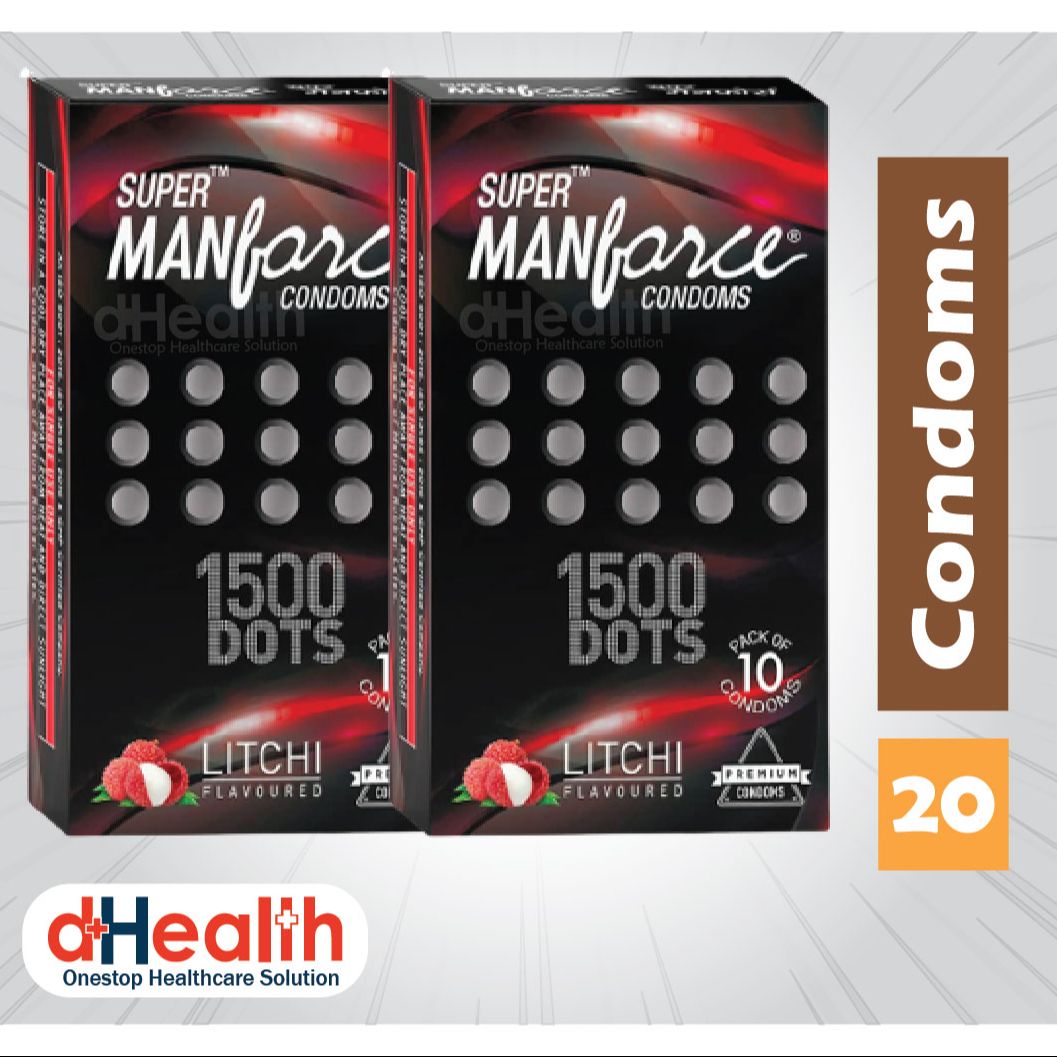 Brand: Manforce Litchi Flavour 1500 Dots Quantity: 2's Combo Pack of 10's (10x2=20 pcs) Length: 180mm Width: 53mm +/- 2mm Country of Origin: India Provide greater sensitivity and a sleeker feel Transparent and lubricated natural rubber latex condoms Dermatologically tested and 100% electronically tested, 100% safe and secure