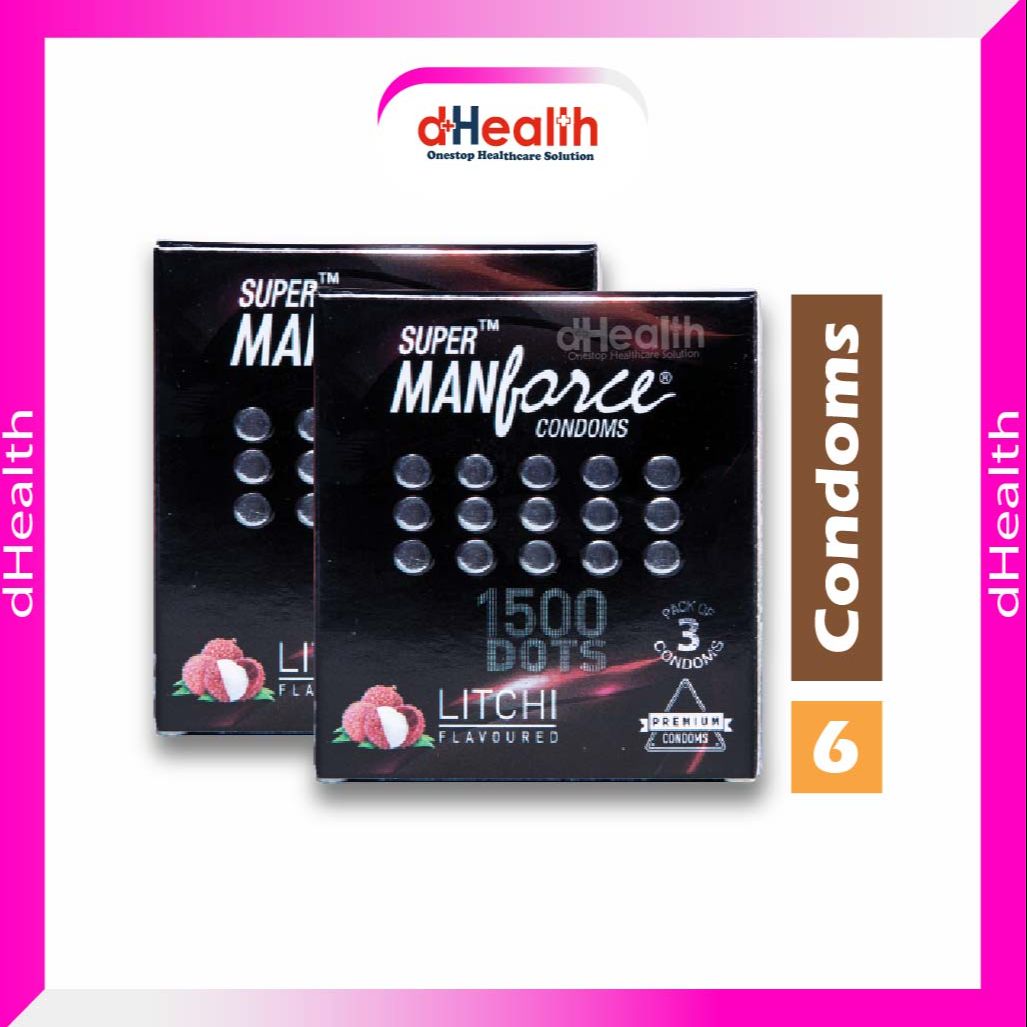 Brand: Manforce Litchi Flavour 1500 Dots Quantity: 2's Combo Pack (3x2=6 pcs) Length: 180mm Width: 53mm +/- 2mm Country of Origin: India Provide greater sensitivity and a sleeker feel Transparent and lubricated natural rubber latex condoms Dermatologically tested and 100% electronically tested, 100% safe and secure
