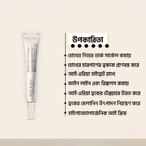 - মেরি অ্যান্ড মে ট্রানেক্সামিক অ্যাসিড + গ্লুটাথায়োন আই ক্রিম