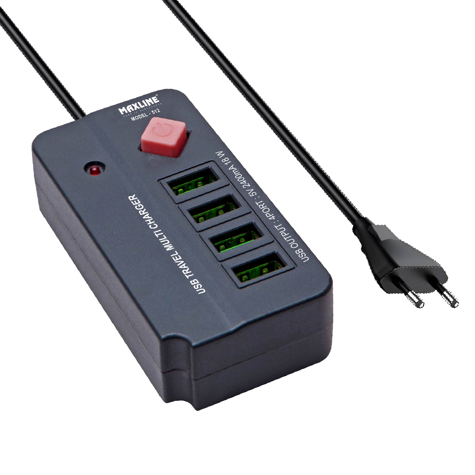 Product details of Maxline Durable 4 USB Travel Multi Charger Model: ML-404-1.2 Miter Cable (18 Watt Usb Charger 4-Port 2400 mA):
