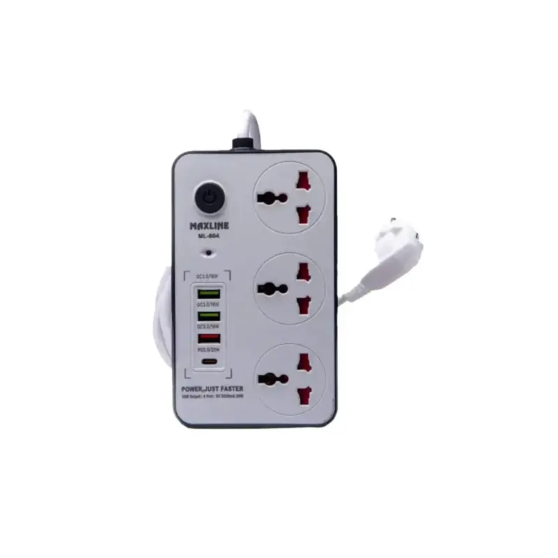 Product Summary & SpecificationSpecification: Title:Maxline ML 804 4 USB Fast Charging Multiplug Power StripBrand:MAXLINEColourWhiteCountry of OriginBangladeshCable Length2 m (6.57 ft)Number Of Socket3FeaturesSimultaneously helps to product multiple- electronics devices while accommodating large adapters.Exclusive custom uk plug to meet all your requirements.Product up to 7 devices against spikes, fluctuations, and electromagnetic interference.ModelML 804Voltage100–250VUSB Port3x USB ASwitchYesMaterialPlasticFrequency50Hz-60HzPlug Type2 pinSafety SystemOverload protectorCable MaterialHigh quality Copper CableWatts38 Watts (Max)Indicator LightYes