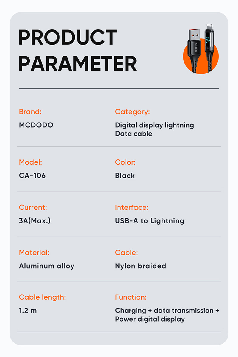 Mcdodo CA-106 Digital HD 12W Lightning Data Cable 1.2m