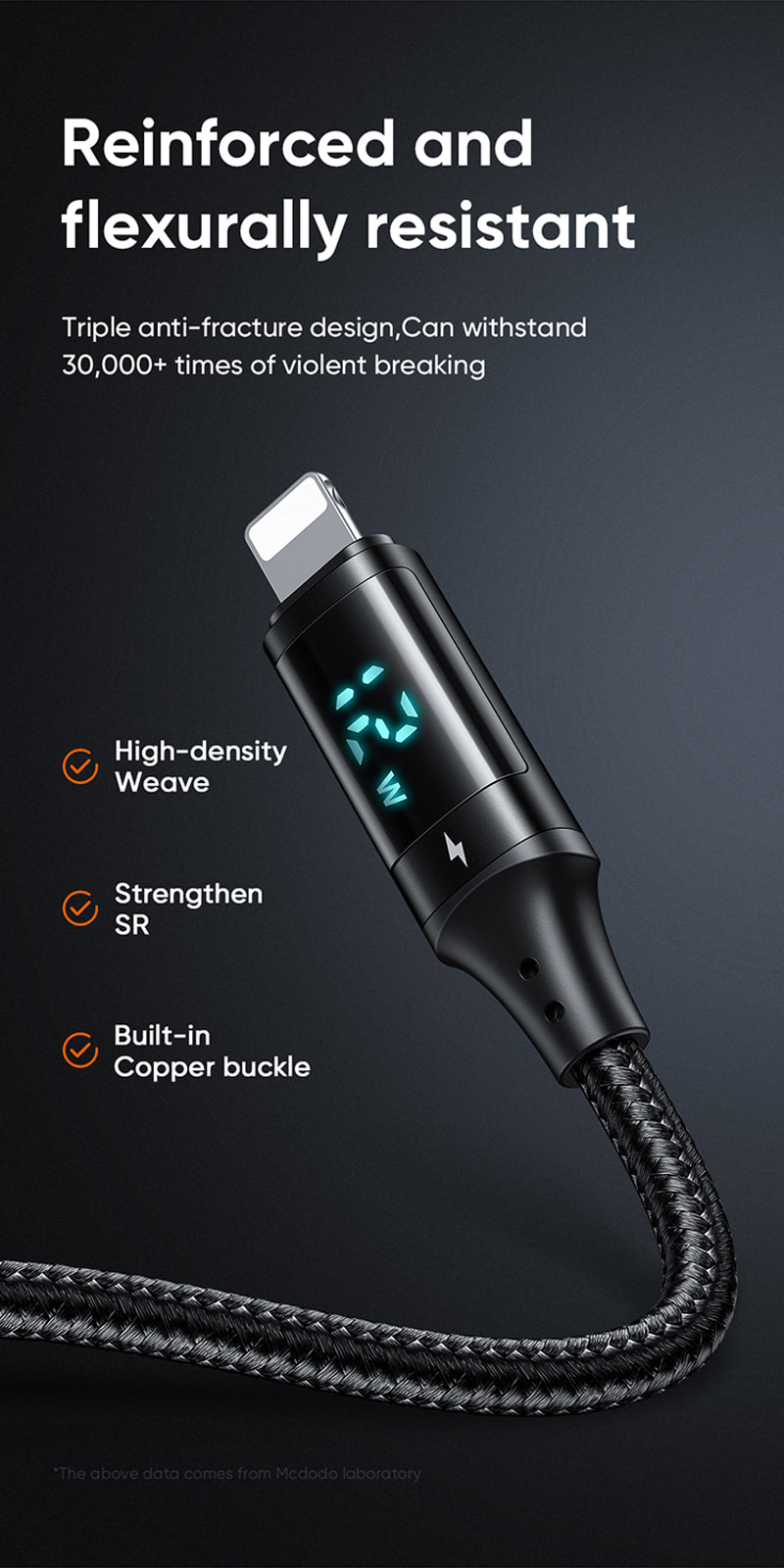 Durable cable: High-density weave, strengthen SR, copper buckle, brings a durable cable