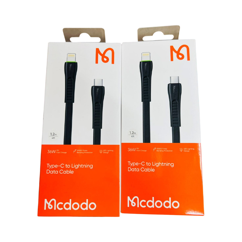 • • Mcdodo type-c to lightning data cable with 36W pd.• Offers first charge and 10000 times bending protection.• Compatible with type-c devices for fast data transfer.• Ideal for mobiles, tablets, and various mobile accessories.• Ensures reliable and durable performance for long-term use.