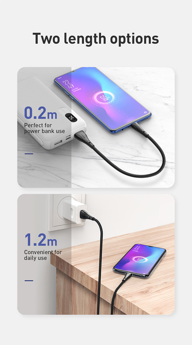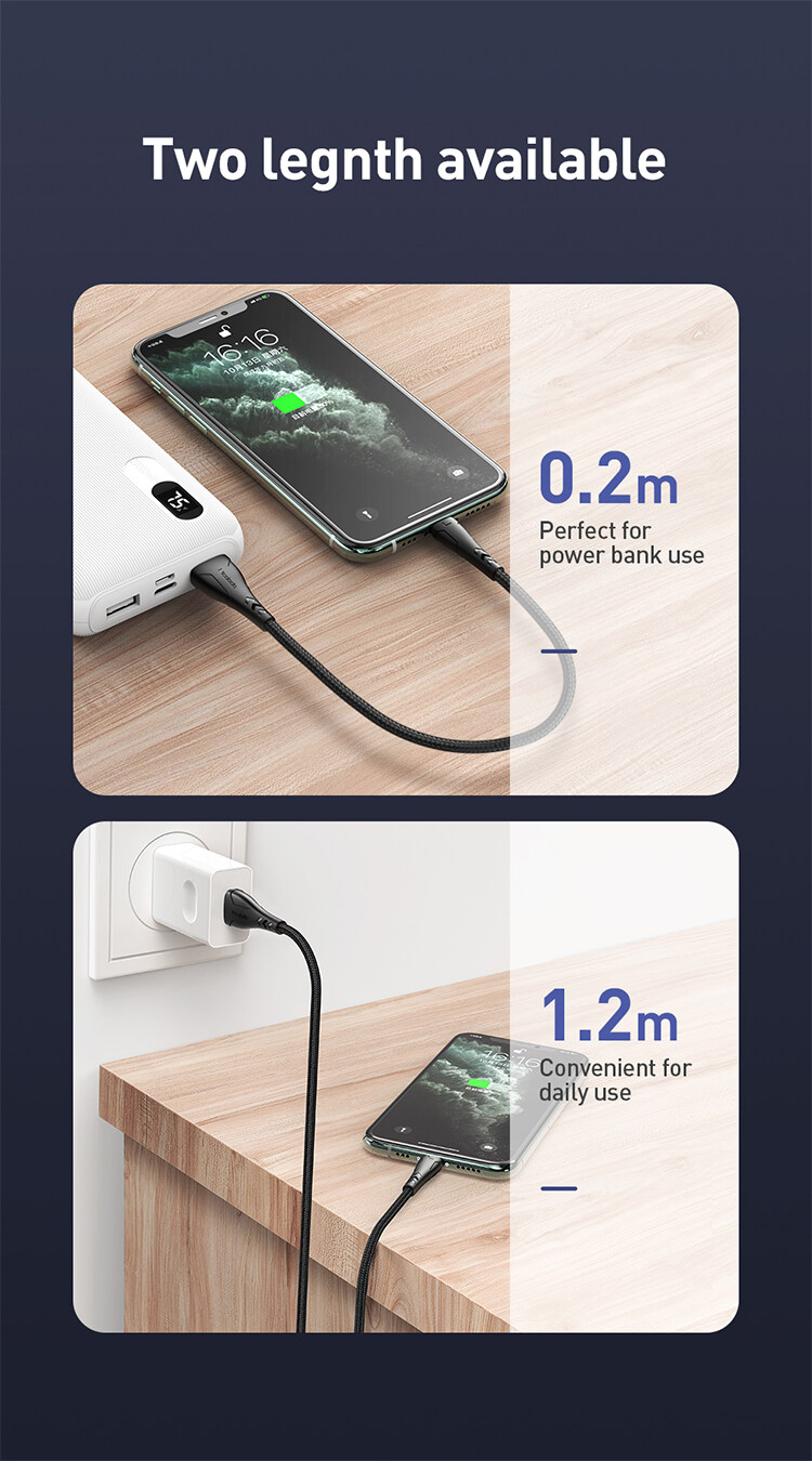 - Strong nylon braided cable