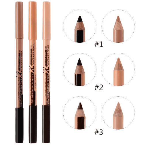A brilliant double sided pencil for eye makeup. One side can be used as eyeliner and eyebrow pencil; another side can be used as highlight and concealer to tidy eyebrow and eye makeup, also can concealer anywhere on face and lips.