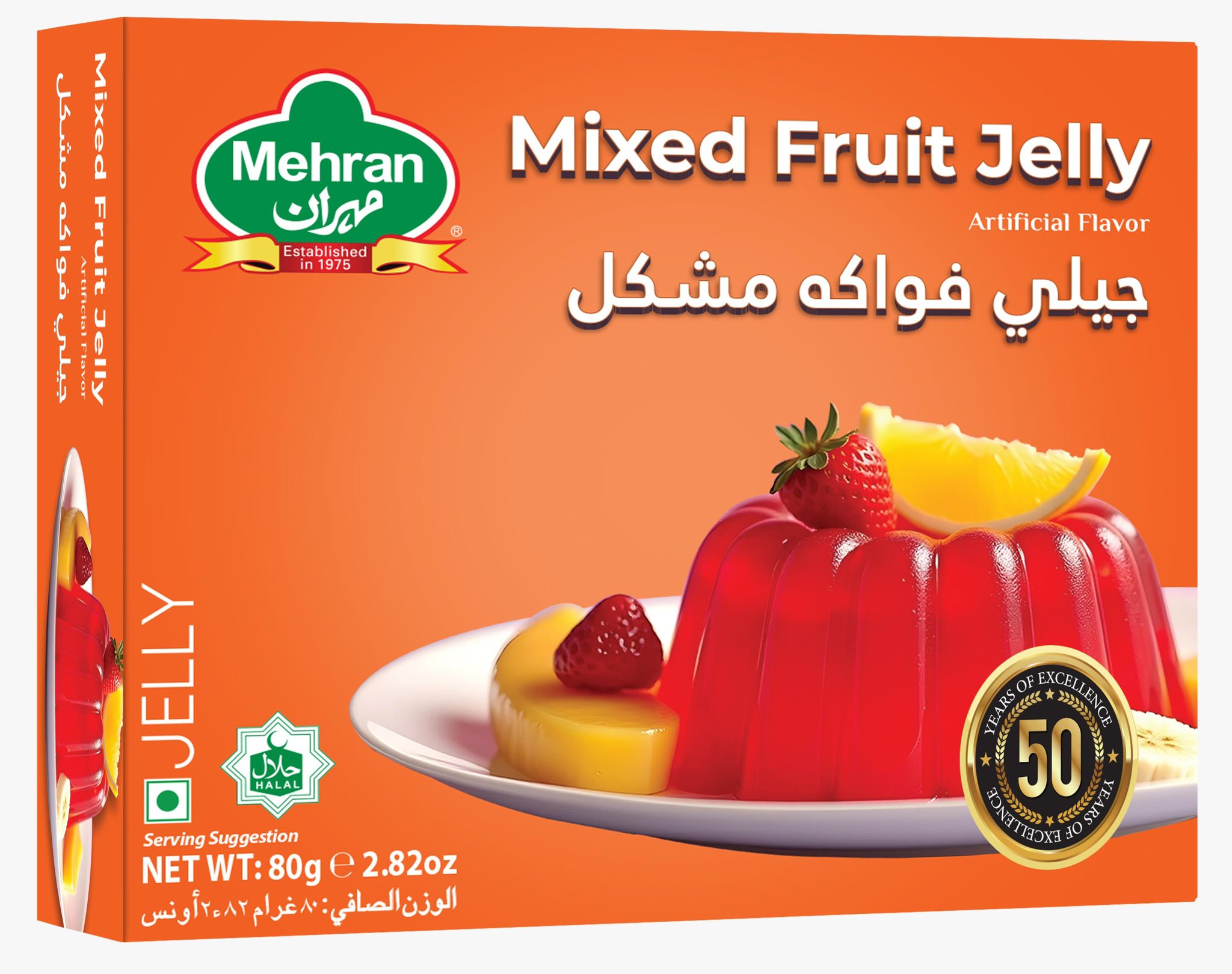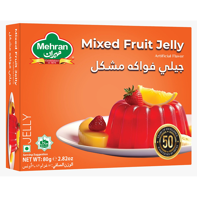 Boil 2 cups (400 ml) of water in a saucepan. Empty all the contents of the Mehran Mixed Fruit Jelly packet into boiling water stir till dissolved.