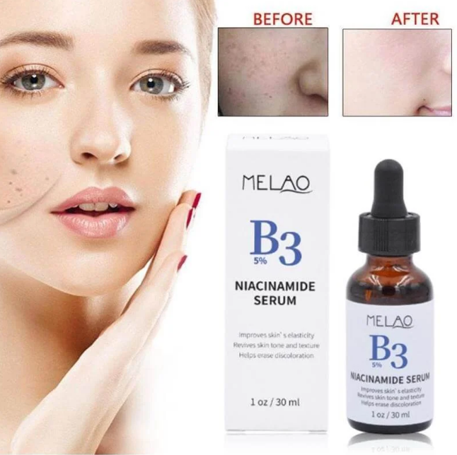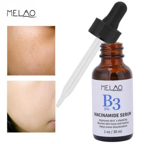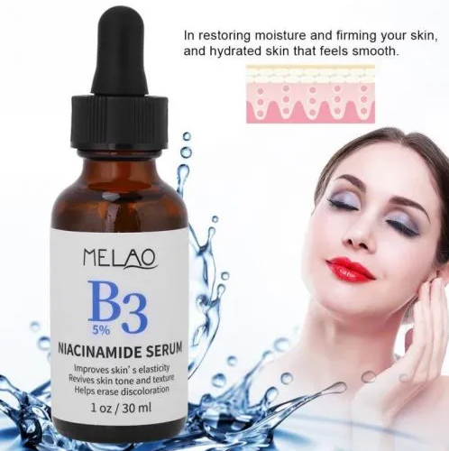 IGHT BREAKOUTS & HYPERPIGMENTATION NATURALLY - MELAO's Niacinamide Serum contains 5% Vitamin B3, which means it's packed with natural, soothing properties that actively work to even your skin tone by addressing breakouts, blemishes, red marks and irritated skin. It also nourishes your skin to minimize redness or blotchiness while diminishing the appearance of hyperpigmentation to give your skin a youthful glow you're sure to love. ADVANCED ANTI AGING COMPLEX - Introducing Niacinamide as a regular piece of any skin care regimen has been shown to reduce the appearance of the most common signs of aging on the skin, including those around the eye, mouth and forehead area. FIRM & PLUMP SAGGING SKIN - With regular use of MELAO's Niacinamide Serum, you'll see the appearance of your pores diminish while your skin regains a firm and plump glow. By supporting healthy elasticity in the skin, this Niacinamide serum fixes wrinkles, fine lines, sagginess and puffiness. MELAO Niacinamide Serum Our MELAO Niacinamide Serum provides powerful strength to the skin's protective barrier, defending it from external factors that can cause breakouts, irritation and aging concerns. Niacinamide, in combination with Hyaluronic Acid, Avocado Oil and Rosemary Extract, soothes, firms and replenishes the skin. Our Animal Testing Standards No animals were harmed in the making of this product. We believe in creating skin, hair and body care solutions without testing our classy_products on animals. Directions Massage a small amount onto cleansed and toned skin, allowing the serum to absorb completely. Follow with appropriate moisturizer. Our Strength : Niacinamide works to reduce sensitivity and redness caused by breakouts and blemishes Reduces hyperpigmentation by brightening discoloration, age spots, and sun spots over time Diminishes post-inflammatory hyperpigmentation left behind by acne Minimizes the appearance of wrinkles and fine lines Strengthens the skin's natural barrier for healthy, defended skin .