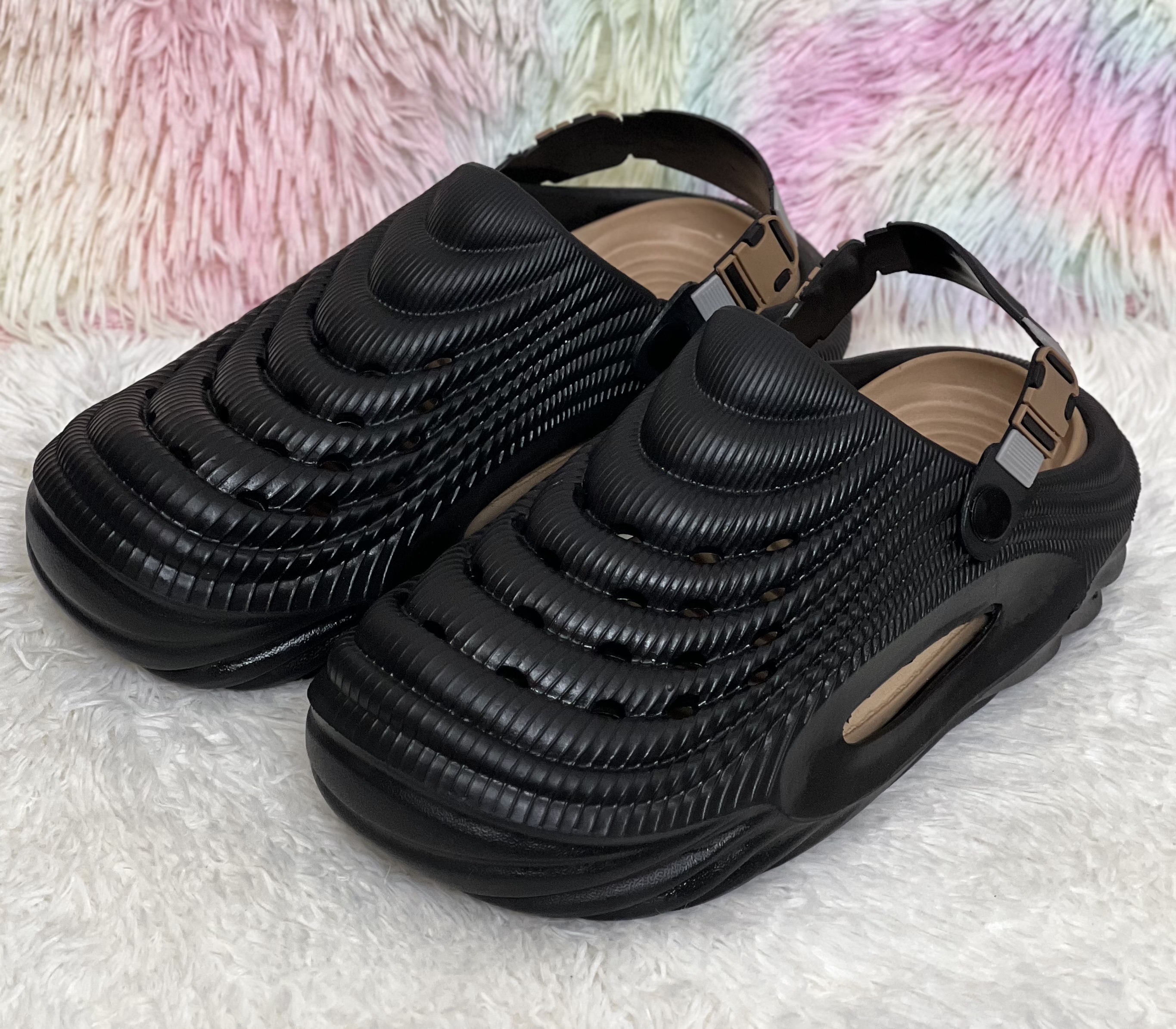 Elevate your off-duty footwear with the Echo-Ridge Textured Clog. Engineered from high-density, injection-molded EVA rubber, these sandals offer a bold, architectural aesthetic defined by unique topographical ribbing. Designed for those who demand more than just a basic slide, they feature a reinforced adjustable tactical strap with a secure buckle closure for a custom fit.