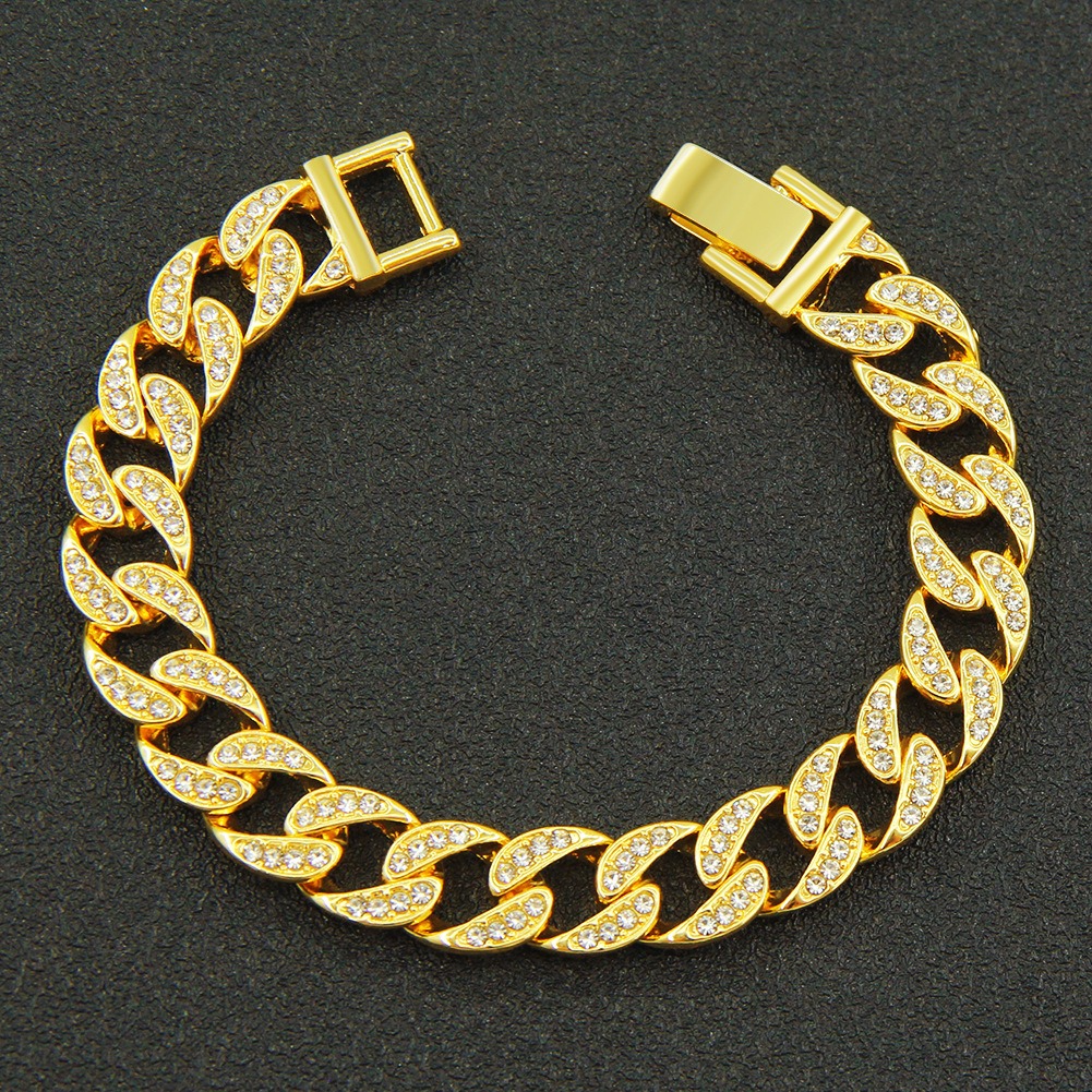 Features: Cuban Link Chain, Rhinestone Inlaid, Wrist Decor