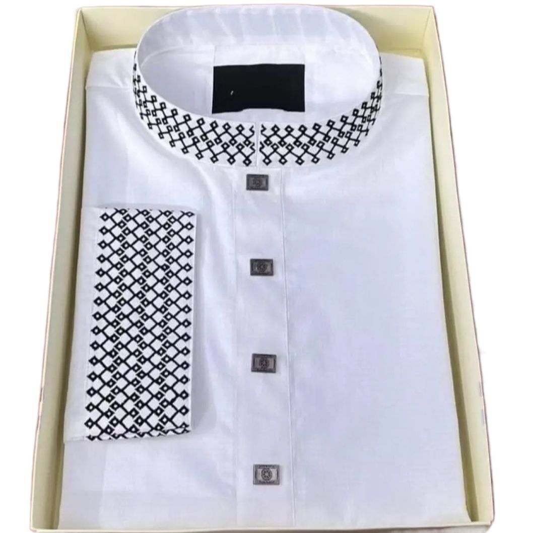 ব্র্যান্ড-OXXO টাইপ-সেমিলং পাঞ্জাবি সাইজ-40/42/44 রঙ - কালো / সাদা এবং ধূসর ফেব্রিক--কটন ফিটিং-নিয়মিত