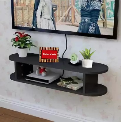 This TV stand set is perfect for organizing your living room. With two shelves, it provides ample space for your set top box, router, and other media devices. Made of high-quality MDF material, this black wall storage shelf is both sturdy and stylish. The sleek design will complement any modern living room decor. The Meraj Furniture TV stand set is easy to install and will keep your media devices organized and easily accessible.