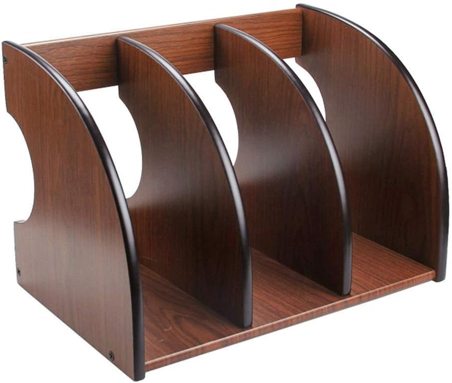 Meraj Furniture zxb-shop Bookshelf Wooden Three Compartment Desktop Bookcase Vertical File Holder Office Organizer (Brown) Bookcase
