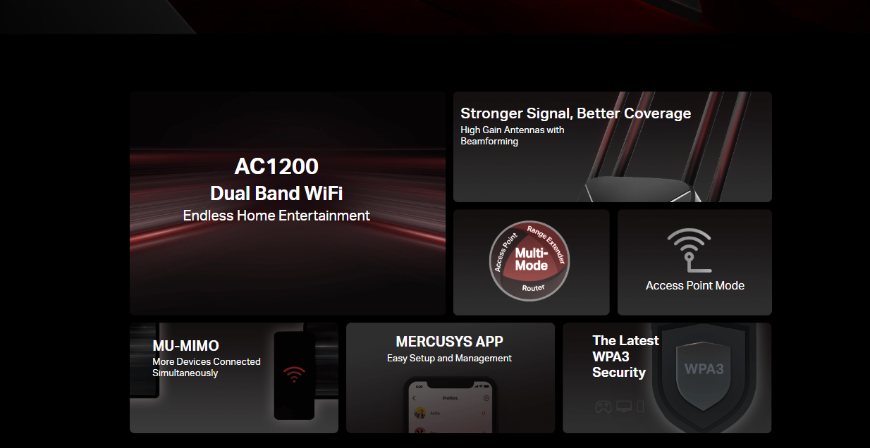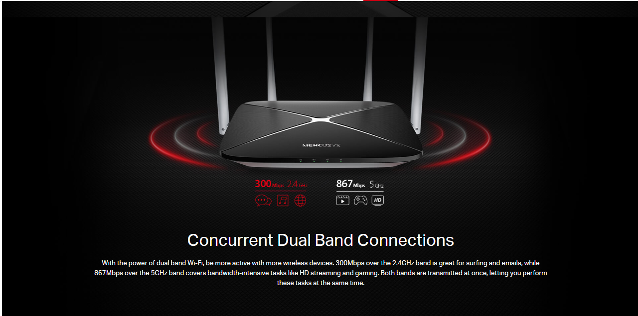 Enjoy smooth online gaming and video streaming with dual band 1200Mbps Wi-Fi