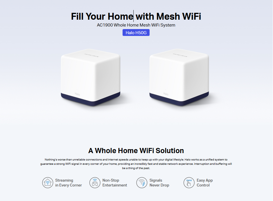 Mercusys Halo H50G AC1900 Whole Home Gigabit Mesh 2pack Wi-Fi System