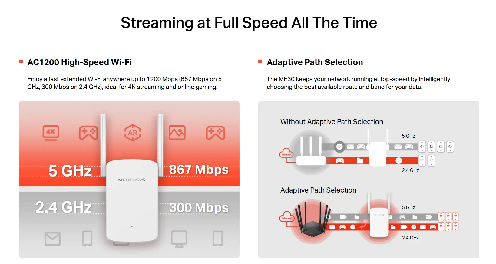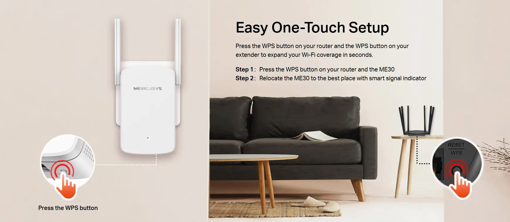 he Mercusys ME30 AC1200 Wi-Fi Range Extender