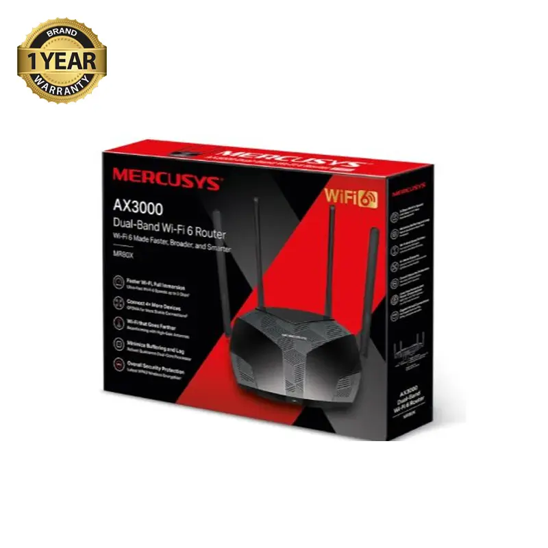 Mercusys MR80X V2.2 AX3000 Dual-Band Wi-Fi 6 Gigabit Router WiFi Speed up to 2402Mbps/5GHz + 574Mbps/2.4GHz, Gigabit 3 LAN Ports, 1 WAN Port Ideal for Gaming