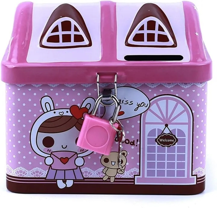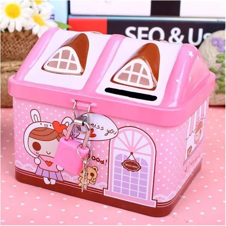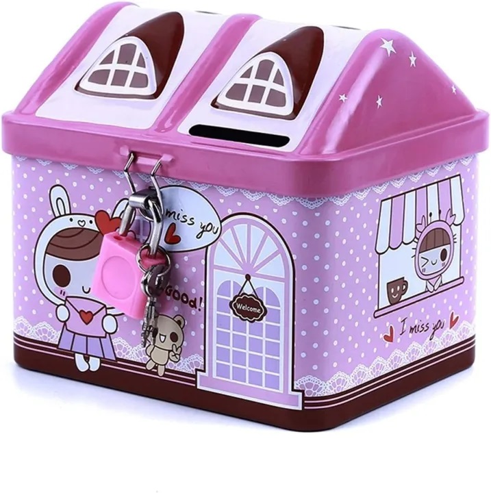 Product details of Metal House Shaped Coin Box Cartoon Kids Money Box piggy bank for kids
