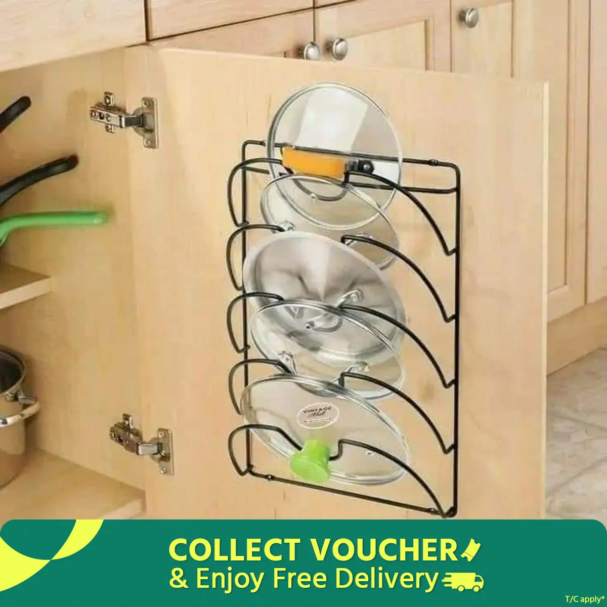 This Metal Lid Holder is a versatile kitchen organizer designed to keep your pot lids, pans, dishes, cookie sheets, bakeware, and cutting boards neatly arranged. The U-shaped central depression ensures a stable hold for pot lids and plates, preventing shaking and instability. Made from durable metal, it can be used on countertops or in the sink, helping to save valuable space in your kitchen. Ideal for keeping your kitchen tidy and organized, this holder is both functional and space-saving.