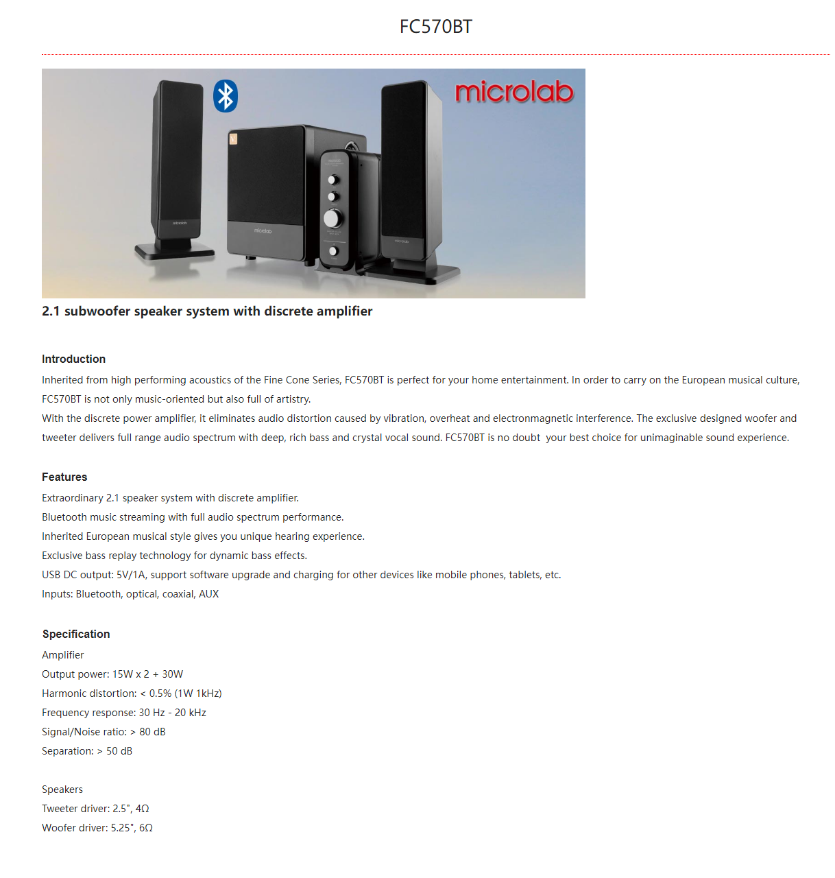 - Extraordinary 2.1 speaker system with discrete amplifier.