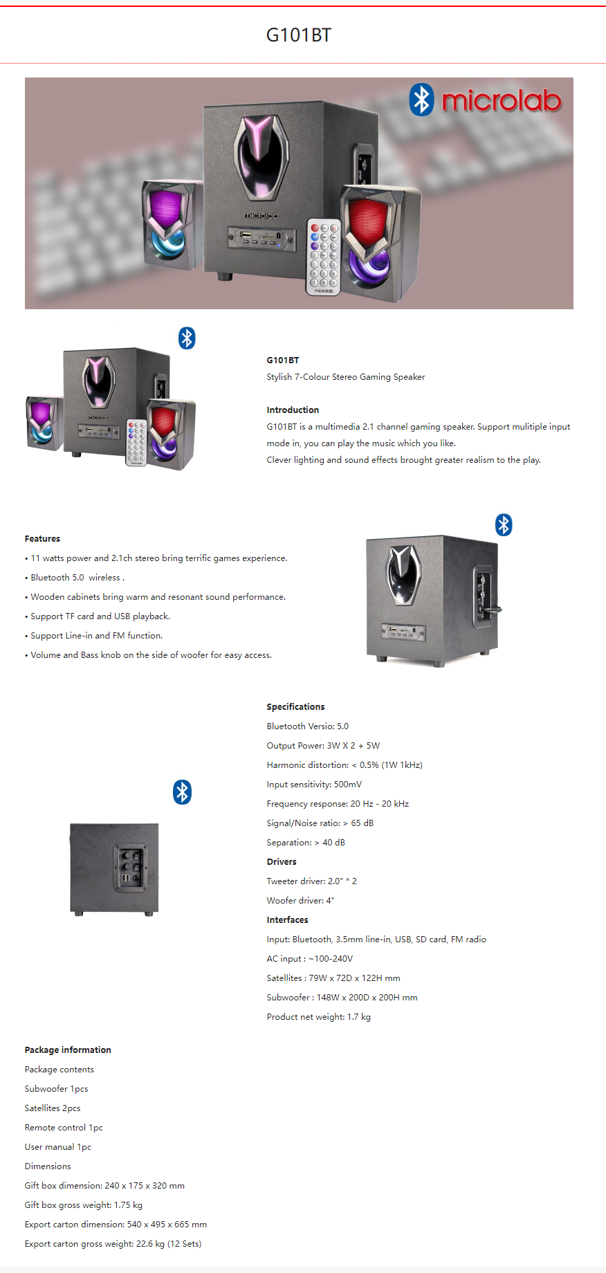 - Input: Bluetooth, 3.5mm line-in, USB, SD card, FM radio