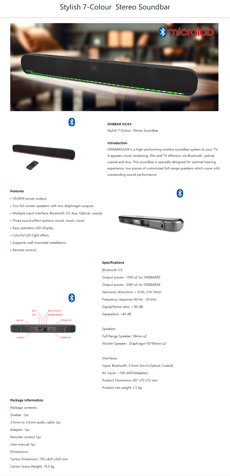 - Input: Bluetooth, 3.5mm line in,Optical, Coaxial