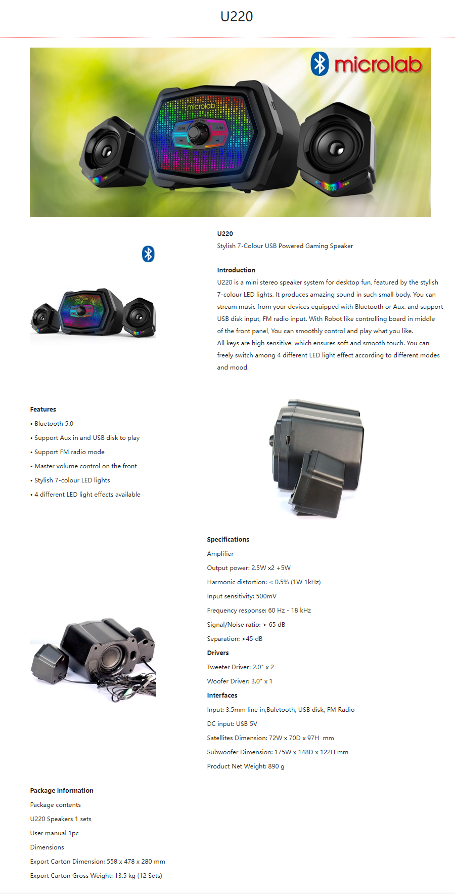 - Input: 3.5mm line in,Buletooth, USB disk, FM Radio