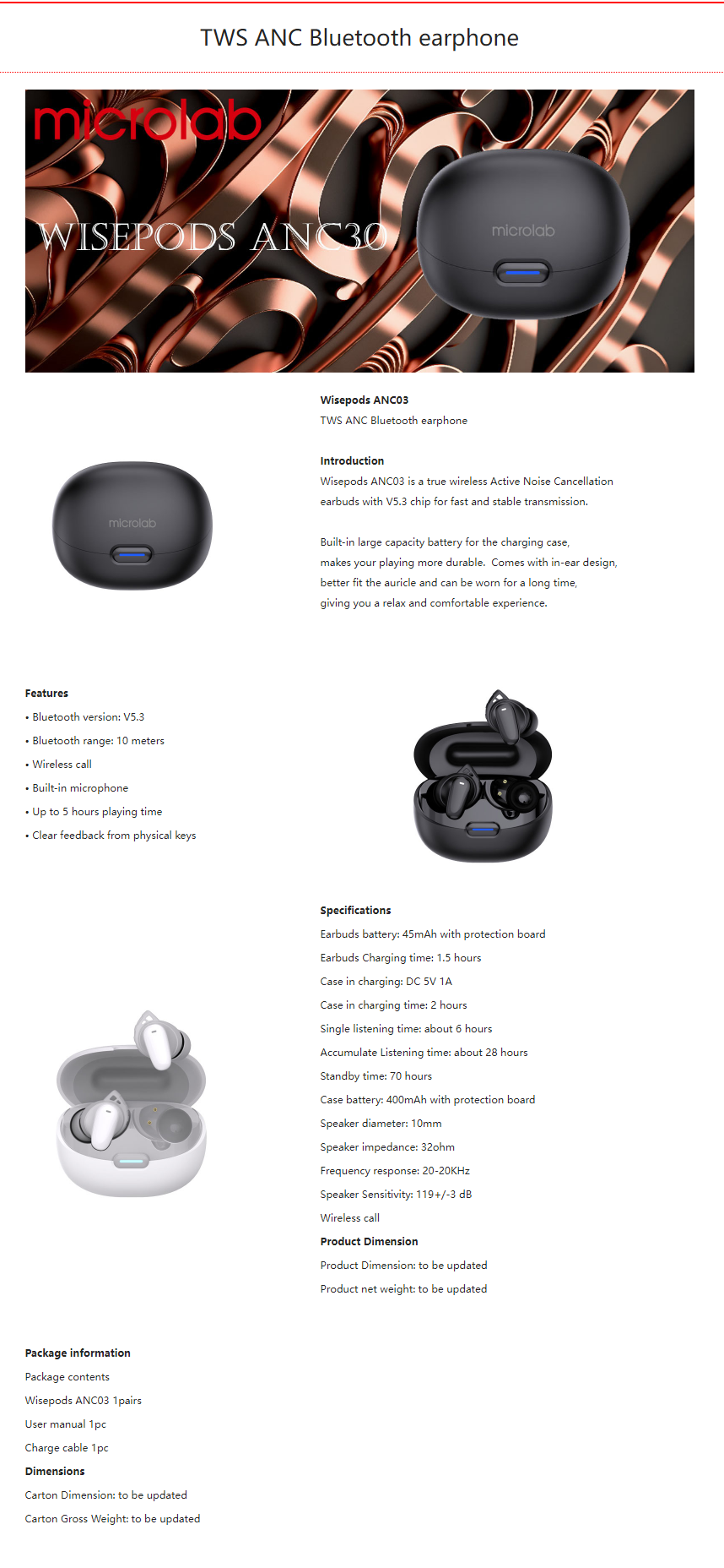 - Product Dimension: to be updated